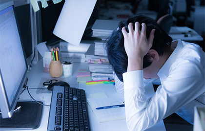 不眠症とは、寝つきが悪い、途中で起きてしまう、眠りが浅く寝た感じがしないなどの症状が続き、日中に眠気に襲われ、集中力の低下や欠如・疲れや体調不良が起こる状態を指します。